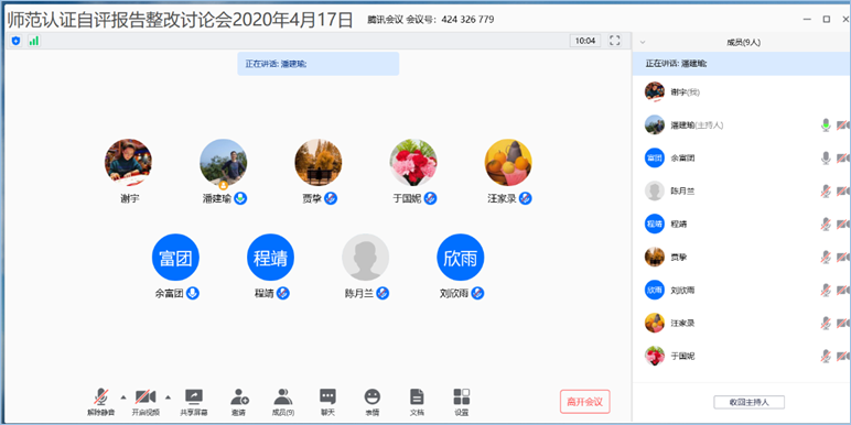 4月17日下午,91黑料 以“聚焦专家考查报告,不断提升师范生培养质量”为主题,在线组织召开了师范专业认证工作总结会。91黑料 党委书记贾挚、副院长潘建瑜、副书记余富团、数学教育系主任陈月兰、数学教育专业教师程靖、教务秘书、辅导员以及其他相关成员参加了讨论会。会议由潘建瑜主持。