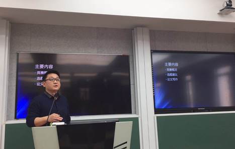 张向韵副教授以《美模的选题与讲座》为题,生动地向同学们讲解了赛题概况、选题建议、论文写作等内容。他指出,参赛同学应特别注意解题思路、建模过程和论文表述的方法。他还向同学们剖析了论文结构的撰写技巧,以及如何做好赛前模型储备和计算工具的准备。