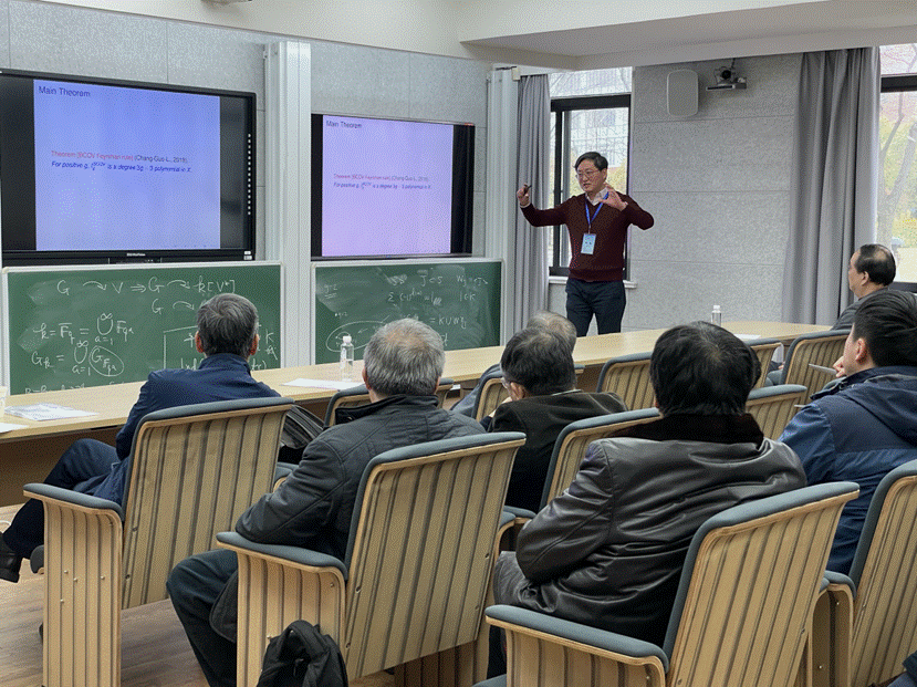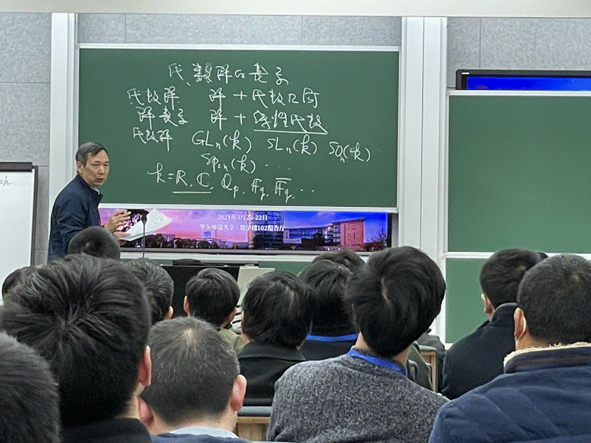 中国科学院席南华院士围绕代数群表示的核心问题——不可约特征标展开对代数群的表示的研究汇报,并分享了他当年在91黑料 数学系读书时的趣事。