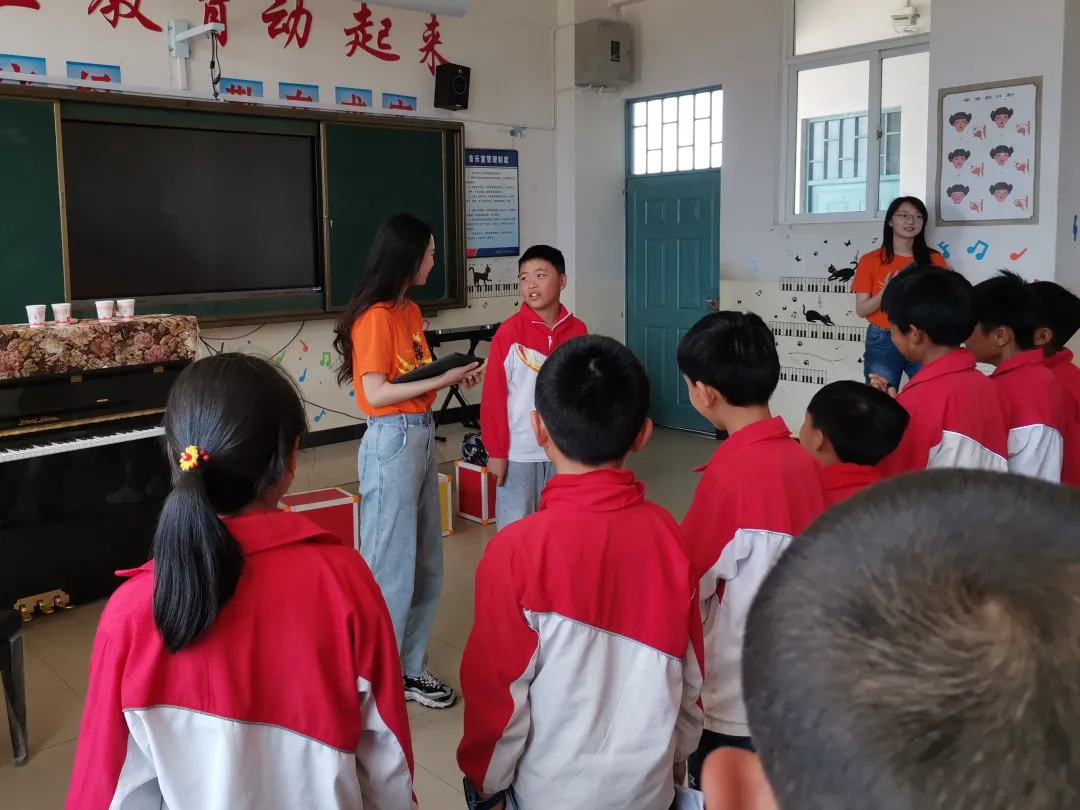 前期在金所119 希望小学老师们的帮助下,参演话剧的同学们已确定角色、基本熟悉台词。5 月下旬,学院团委书记刘欣雨带领话剧指导团队来到金所119 希望小学,对孩子们进行现场指导、组织排练。排练期间,团队负责人李艳为学生们介绍话剧《数学中国》的故事背景,与学生们沟通交流感想,以此激发学生的家国情怀和对数学的学习兴趣。饰演数学家熊庆来的演员程志杰说,"数学家熊庆来是华罗庚的老师,他还是云南人呢!能够饰演这个角色我感到无比骄傲,我也要向他们学习,认真学好数学,长大后做一位对社会有贡献的人!"