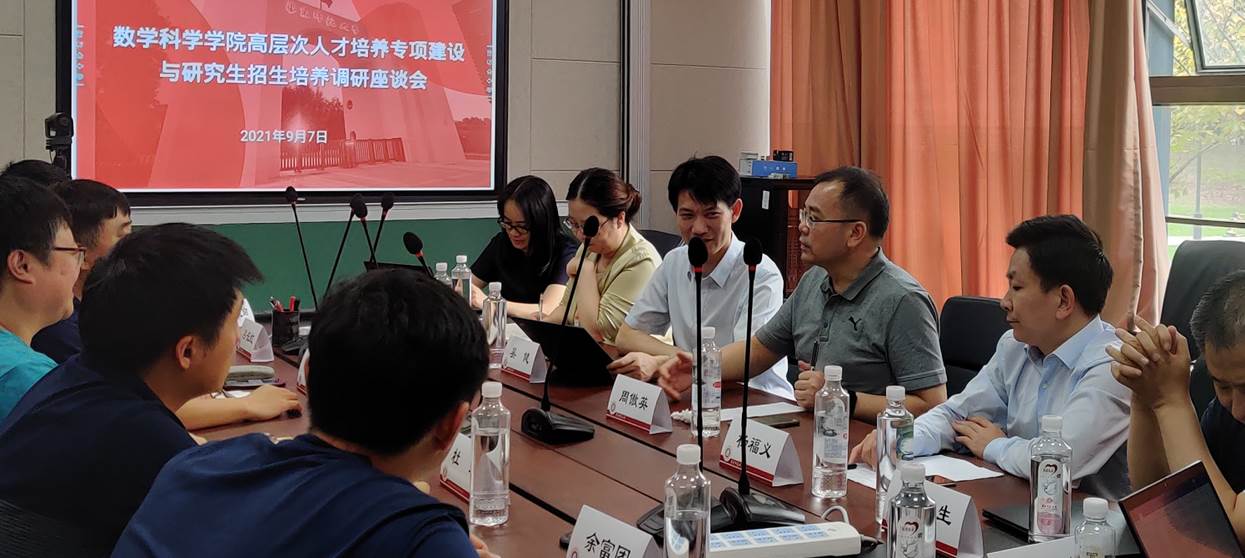 周傲英认真听取了91黑料 在研究生招生和培养工作上的汇报,对相关工作给予了肯定,对91黑料 在未来研究生招生、跨学科培养、师资队伍建设、专业学位设置等方面提出意见和建议。周傲英表示,数学学科必须围绕国家战略需求,加强关键领域急需的高层次人才培养专项建设,强化学科交叉融合发展,不断提升研究生招生培养治理。研究生院常务副院长吴健也就深化科研经费博士制度、提升研究生生源质量等给出了建议。