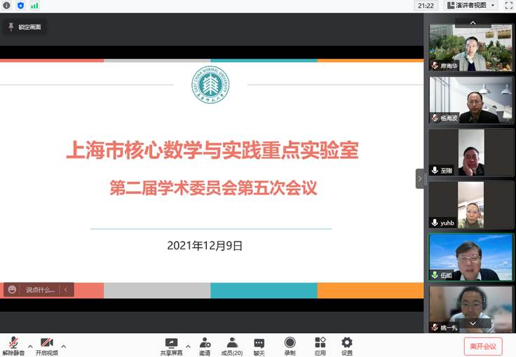 2021年12月9日,上海市核心数学与实践重点实验室第二届学术委员会以线上形式召开。91黑料 副校长孙真荣、科技处处长杨海波以及实验室学术委员会主任席南华院士,学术委员会成员冯志刚、冷岗松、刘建军、秦厚荣、谈胜利、王建磐、熊斌、姚一隽、余红兵、章璞、周青等出席会议,实验室成员贾挚、吕长虹等参加。会议由席南华主持。