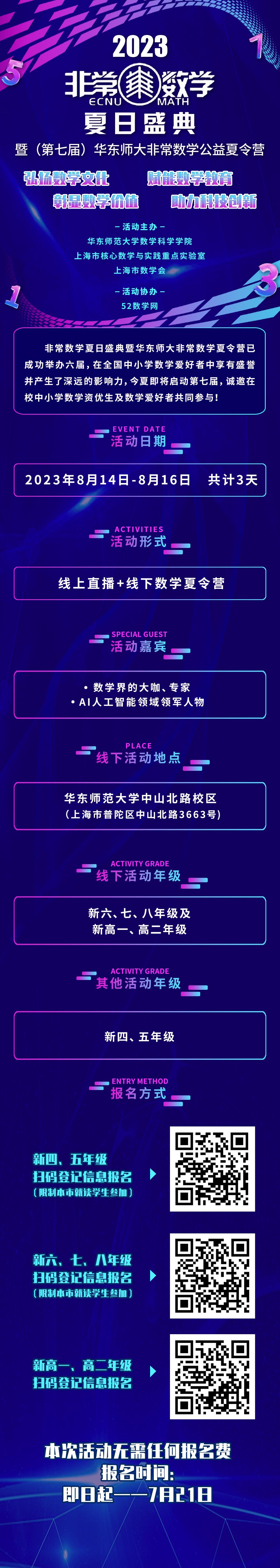 2023年“非常数学·夏日盛典”暨第七届华东师大“非常数学”公益夏令营报名开始啦!