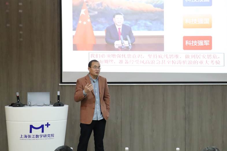 上海张江数学研究院院长、党支部书记尹俊平简要而全面地介绍了研究院聚焦“数学+”战略,在服务国家战略及助力上海重点产业发展方面所取得的成果,同时,也展望了研究院面向未来的发展规划。他满怀期待地表示,希望通过此次联组学习活动,能够进一步加强党建工作与科研工作的深度融合,激发科研团队的凝聚力和创造力,共同推动数学科学的发展。