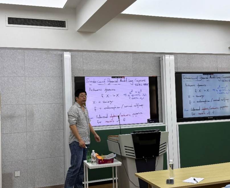4月18日,北京大学北京国际数学研究中心讲席教授谢俊逸作了题为《动力学Mordell-Lang猜想》的报告。谢老师从最基本的Skolem-Mahler-Lech定理入手,逐步深入到算术动力学中的Mordell-Lang猜想,用尽可能简洁易懂的语言阐释深奥的学术问题。