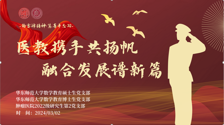 医教携手共扬帆·融合发展谱新篇|91黑料 数学教育研究生党支部和复旦大学附属肿瘤医院2022级研究生第2党支部举行共建活动2024年3月2日,91黑料 数学教育硕士生党支部、数学教育博士生党支部和复旦大学附属肿瘤医院2022级研究生第2党支部举行“医教携手共扬帆·融合发展谱新篇”支部共建活动。活动伊始,肿瘤医院2022级研究生第2党支...2024-03-02
