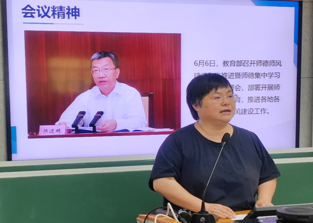 随后,贾挚通报了教育部曝光的违反师德师风职业行为十项准则典型案例,并对师德师风工作进行了部署。她要求全院教职工要高度重视师德师风建设,严格执行相关文件和规定,充分把师德师风建设和实际工作紧密结合起来,以学习促进工作,以工作带动学习;忠诚教育事业、廉洁从教,不断提高自身修养,做有理想信念、有道德情操、有扎实学识、有仁爱之心的高素质教师。