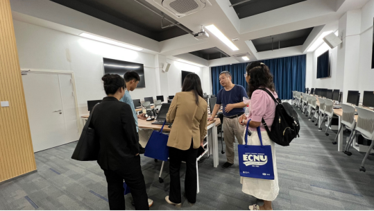 随后,丽江师专数学与信息学院师生一行又来到智能数学实验室参观。智能数学实验室运营部经理王亚玲介绍了智能数学实验室项目的四大空间、五大课程与评价板块。到访人员通过观看数学故事趣味视频、亲身体验数学活动项目等,感受了数学文化带来的创意和启示。