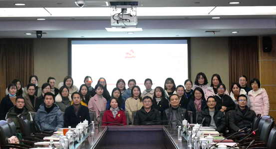 随后,副院长、数学教育支部党员潘建瑜介绍了学院课程思政建设推进情况,从数学文化传播、大学数学的教学方式、课程思政下的教学设计三个方面阐述了数学学科在课程思政建设方面的探索与努力,提出了如何推进课程思政大中小一体化建设的问题,希望借结对共建的机会,携手攻克困难和瓶颈。