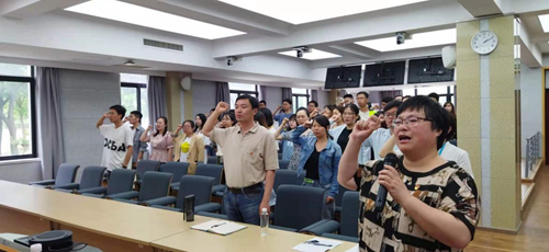 党课结束,贾挚带领全体党员重温入党誓词。字字铿锵,激励毕业生党员始终铭记入党誓言,巩固和增强为社会主义和共产主义奋斗的信念。