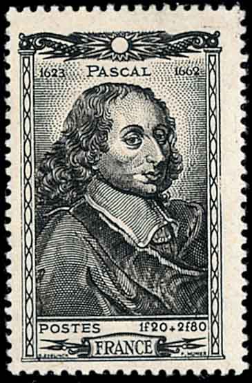 对于概率问题的数学研究最初是从赌博问题开始。在17世纪,欧洲的宫廷贵族盛行掷骰子(图1)赌博。在赌博中出现许多有趣的问题。如: 甲乙两人轮流掷骰子赌博,各押赌金32金币,若甲先掷出3次6点, 或者乙先掷出3次4点,就算赢了对方。在赌博进行一段时间后,甲已掷出2次6点,乙也掷出1次4点。这时赌博因故中断,试问如何分配这32枚金币才公平。这些问题引起当时数学家帕斯卡(Blaise Pascal, 1623-1662,图2)的关注,他与他的好友数学家费马(见本刊2007年第12期)在通信中讨论了这些问题,并分别给出正确答案。而解决的办法就是后来被称为“数学期望”的概念。 数学期望是一次随机抽样中所期望的某随机变量的取值,是概率论中最基本的概念。从而大家公认帕斯卡和费马是创立概率论的先驱。
