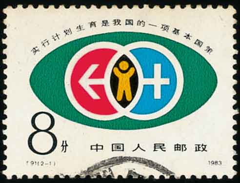 当然,人口统计是基于人口普查的基础之上。因此,古往今来各国都非常重视人口普查工作。我国是世界上最早统计人口的国家之一,如在公元前22世纪,大禹曾有“平水土,分九州,数万民”之说, 这里“数万民”就是统计人口。新中国成立以来,已经进行了6次人口普查。图3是我国为第3次人口普查发行的纪念邮票,而我国实行的计划生育政策(图4),不仅是控制人口的盲目增长、 也是控制男女婴儿正确比例的一种手段。
