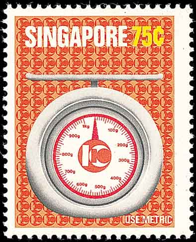 数字的最基本功能是计量。它是从清点某一事物的个数开始,然后发展为对这个事物轻重、大小等定量方面的描述。原先世界各地都有自己的度量标准,为了便于国际范围内的交流, 1875年17个国家的代表在巴黎召开会议制定国际通用的计量制度,通称公制。图1是韩国通过邮票来宣传与推行公制。公制的单位制度,又称米千克秒(mks)单位制,它们分别用来确定距离、质量和时间。