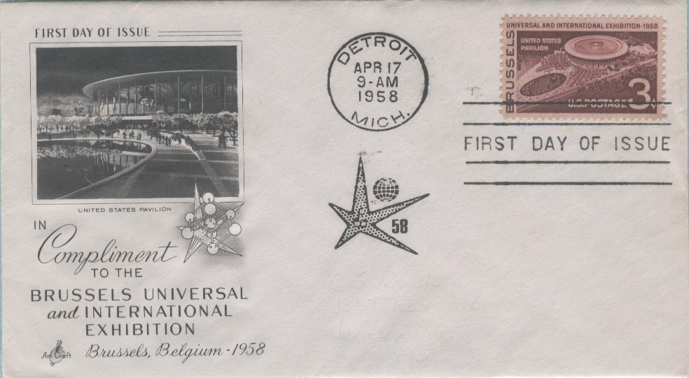 图9:美国为布鲁塞尔世博会发行的纪念邮票及首日封