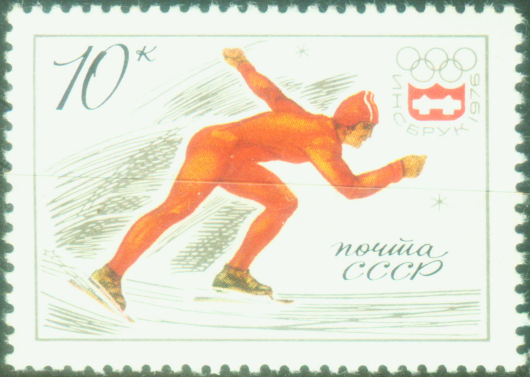 下面罗列一些国家发行的速度滑冰比赛画面的邮票(图13-15分别来自1936年德国,1964年苏联,1995年意大利)。
